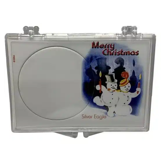 Introducing the Merry Christmas Snowmen snap lock, designed specifically for collectors needing an American Silver Eagle storage case for display. Moreover, Edgar Marcus designs these coin holders from premium, crystal-clear polystyrene ensuring maximum visibility of your 1-oz American Silver Eagles. Each display holder protects the coin and also showcases unique and beautiful artwork, making it an excellent addition for collectors.