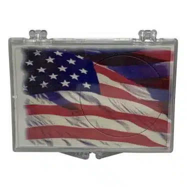 Introducing the Silver Round Flag snap lock, 2×3 coin holder, designed specifically for collectors who appreciate fine silver. Further, Edgar Marcus designed this product from premium, crystal-clear polystyrene that ensures maximum visibility of your .999 fine silver round. Each display holder protects the coin and also showcases unique and beautiful artwork, making it an excellent addition for collectors.