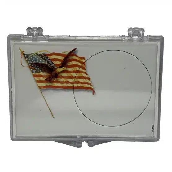 Introducing the Small Eagle Snap Lock, 2×3 coin holder, designed specifically for collectors who appreciate fine silver. Further, Edgar Marcus designed this product from premium, crystal-clear polystyrene that ensures maximum visibility of your .999 fine silver round. Each display holder protects the coin and also showcases unique and beautiful artwork, making it an excellent addition for collectors.
