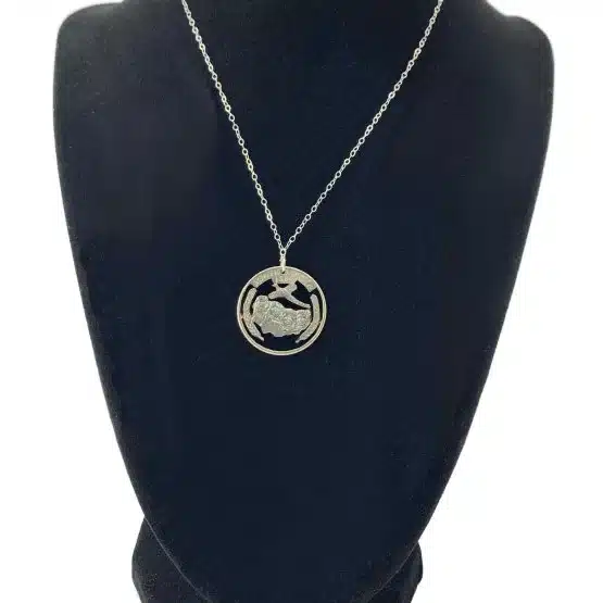 Showcase state pride with the exquisite South Dakota Altered State Necklace, which is an elegant interpretation of the popular trend of coin-cut state jewelry. Furthermore, this stunning piece is perfect for anyone who cherishes their roots or appreciates unique accessories. Specifically, artisans crafted these from genuine quarter-dollar coins released in 2006. Notably, the South Dakota quarter remains celebrated as the “Mount Rushmore State.”