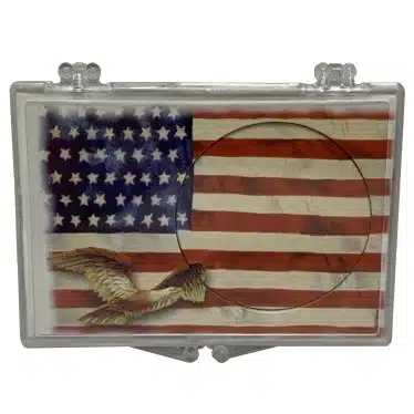 Display your .999 fine silver rounds with elegance and flair using these U.S. Flag & Flying Eagle Snap Lock Coin Holders. Specifically crafted for avid collectors, these holders not only provide exceptional protection for your valuable coins but also enhance their aesthetic appeal. Don’t miss out, place your order today!