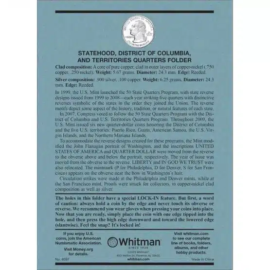 Protect and Organize with the Whitman US State Quarter Collection Coin Folder, includes DC and Territories