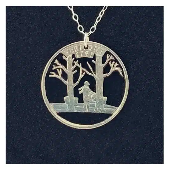 - Unique Design: Artisans craft each necklace from an authentic quarter with the words “Vermont and year of 1791.” It also captures the scenic beauty of a person tapping two maple trees to get the sap.