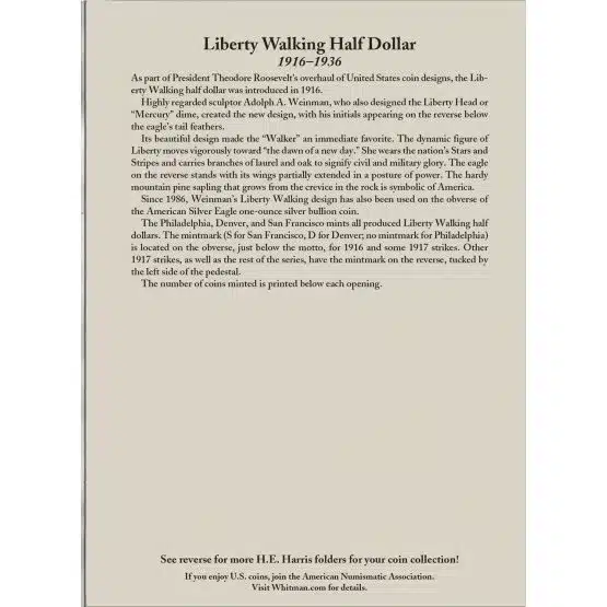 Therefore, don’t miss out, start your coin collecting journey now! Above all, explore our H.E. Harris Walking Liberty Half Dollar Coin Folder #1 1916-1936, and unlock your world of treasures today!