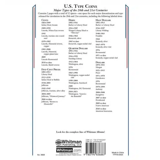 Elevate your coin collection with the Whitman Coin Album for 20th and 21st Century U.S. Type Coin. Your essential companion for preserving and showcasing your valuable coins.