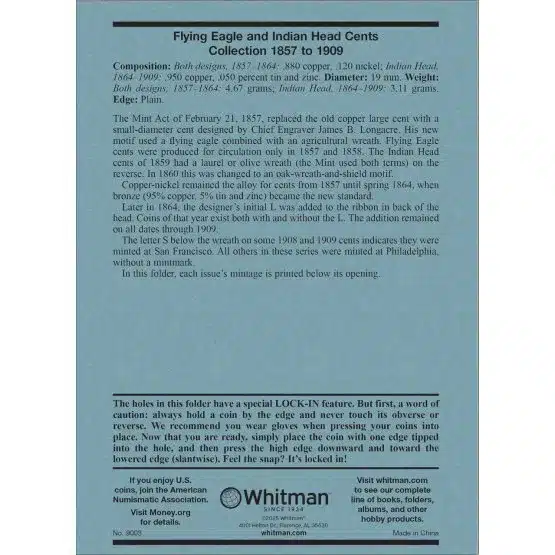Organize and Protect: Get Your Whitman Indian Head Cent Folder, Spots for Flying Eagles, Covering 1857-1909!