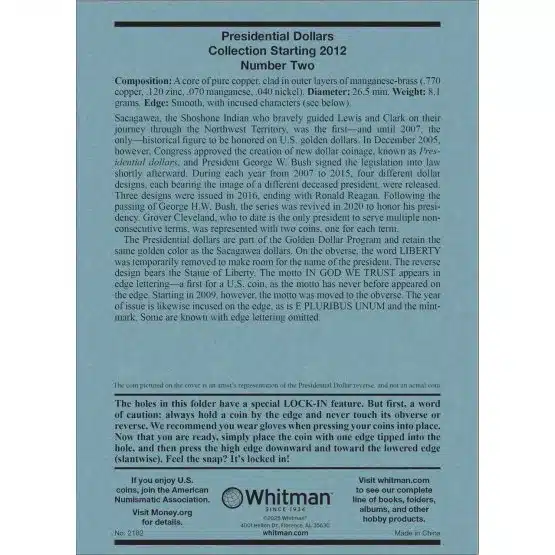 In conclusion, the Whitman Presidential Dollar coin folders (starting 2012) serve as an essential tool for both novice and experienced collectors. It also provides an organized, visually appealing, and educational way to preserve and display these historic coins. Additionally, with its durable design and user-friendly features, this folder enhances the experience of coin collecting. Furthermore, it enriches one’s understanding of American history through the valuable information it offers.