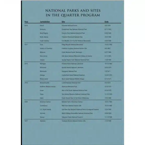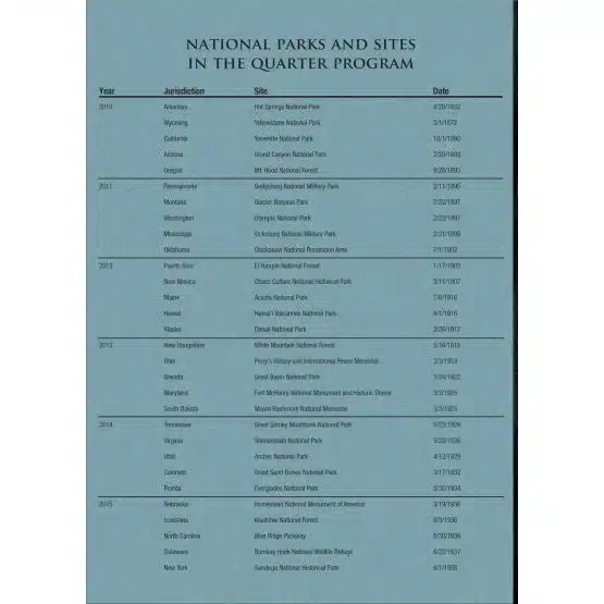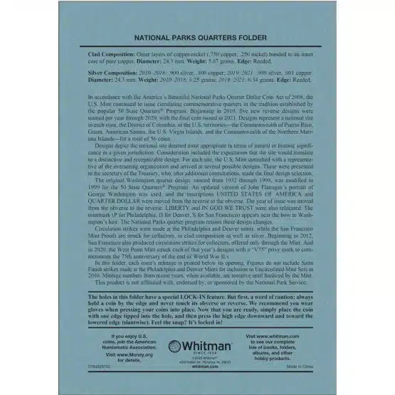 - Informative Details: Each folder includes historical background, mintage data, and also series details, pertaining to the National Park quarters.