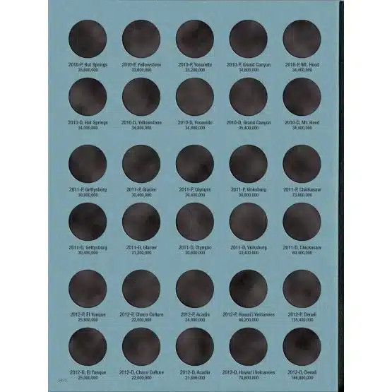 Enhance your collection by adding the National Park coin collection folder, which encompasses coins minted from 2010 to 2021. The Deluxe Edition features both the Philadelphia and Denver mints, offering a total of 120 designated openings for you to showcase your coins. Order yours today!