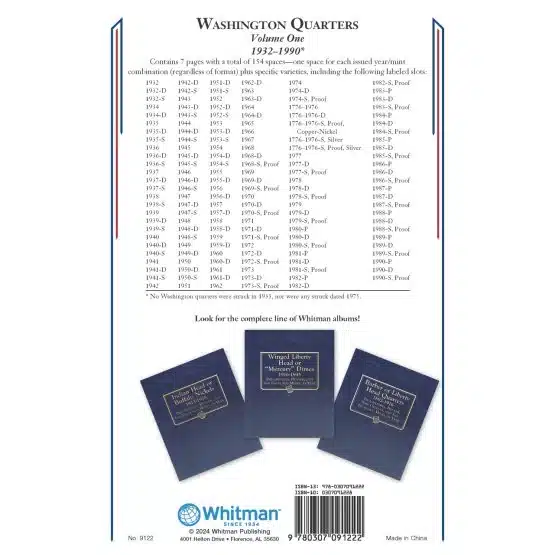 Beautiful color images and an information page welcomes you into this attractive album. Each album is strong, soil-resistant, and designed with thumb notches for easy window removal. Every album features a trademark grained leatherette cover in the classic Whitman blue color. 154 openings, 7 pages.