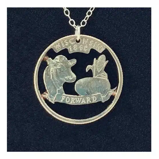 Transform Your Style with Unique Wisconsin Cut Coin Jewelry – State Quarter on an 18-inch Chain!